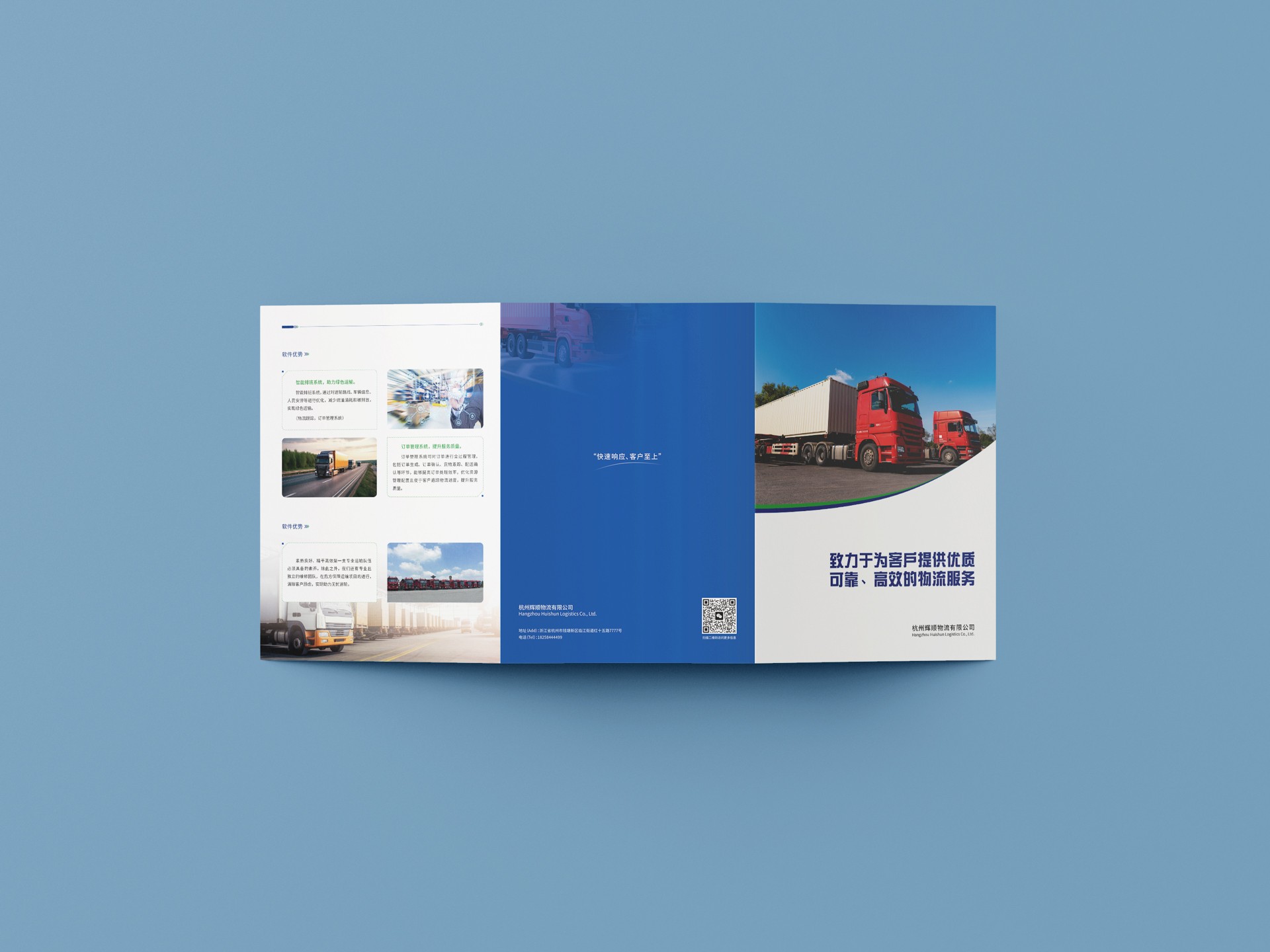 以深藍(lán)色為主色調(diào),象征杭州輝順物流的穩(wěn)重、專業(yè)與可靠。