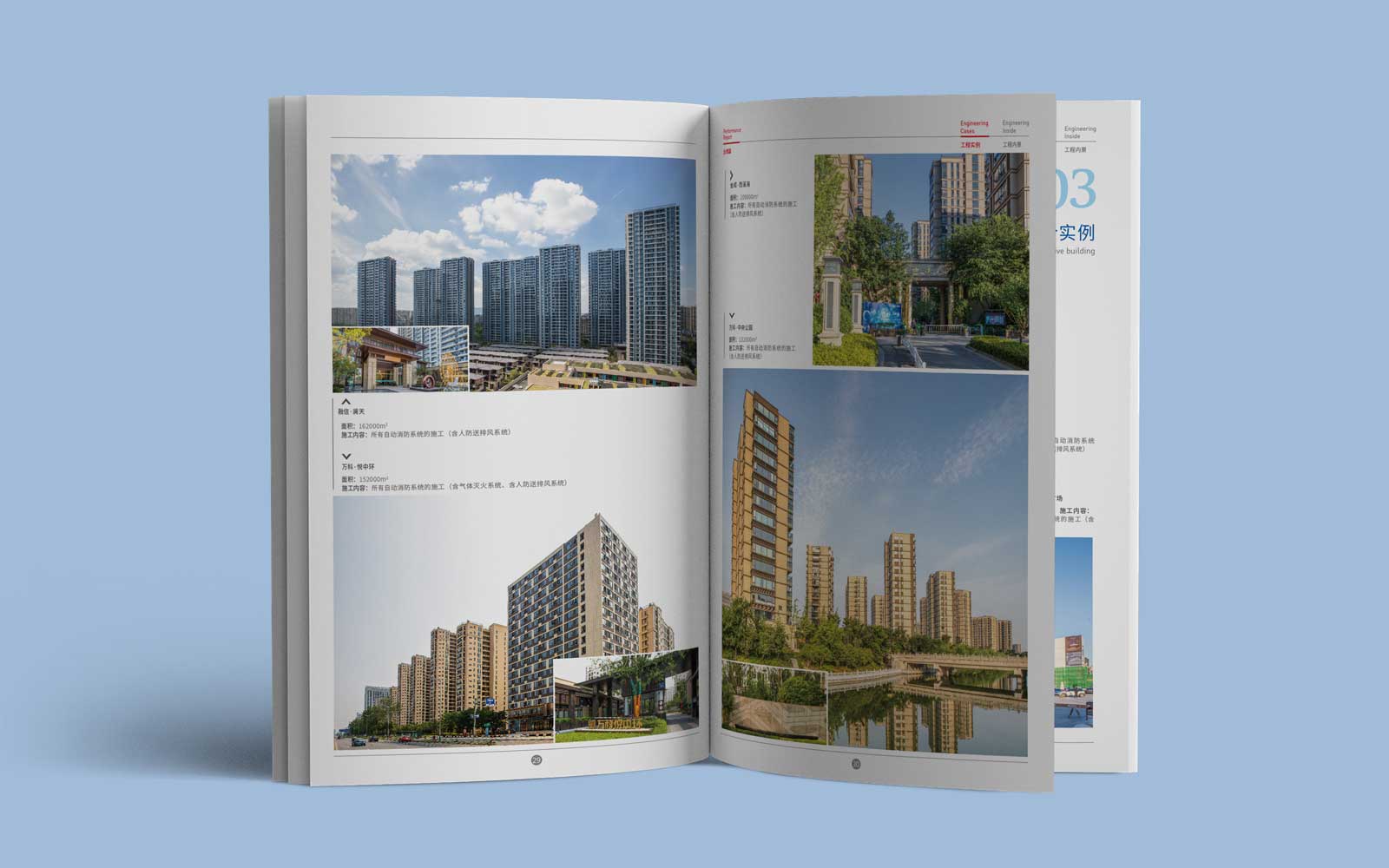 本案外景居多,石特廣告攝影師和甲方人員不辭辛苦,尤其是夏天拍攝,大太陽下面圍繞建筑項目轉圈尋找合適的最好角度,力求宣傳冊設計中用到的照片都是當前項目最好的呈現效果。