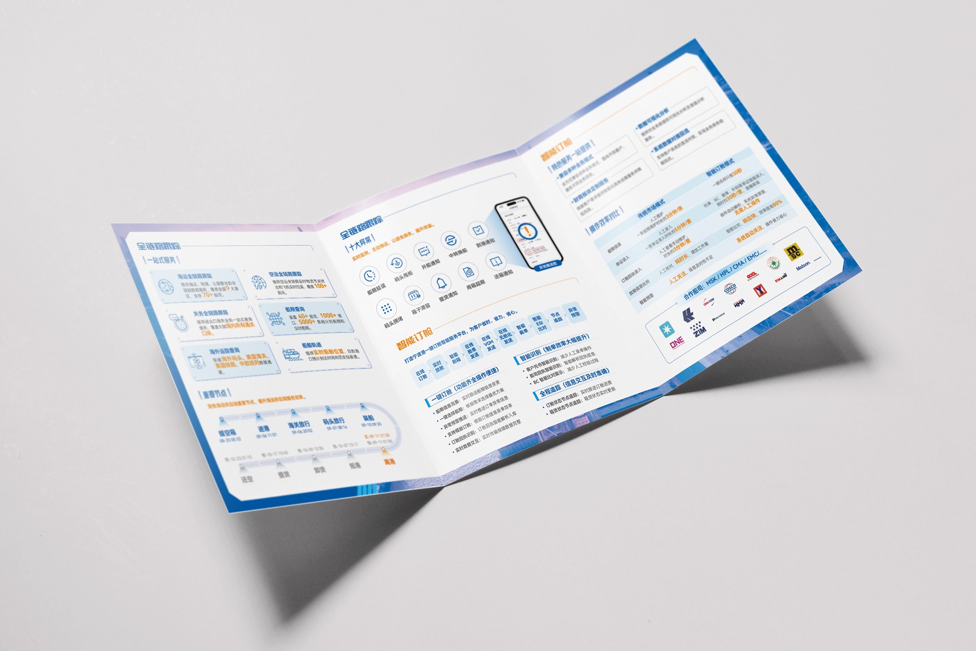 一、戰略定位精準化深度調研港口物流行業趨勢及目標客群需求,提煉"效率革命·綠色智聯"傳播主線 構建"1+4+N"內容體系:1個品牌核心價值+4大業務版塊(海港/陸港/空港/信息港)+N項服務亮點二、視覺設計場景化獨創"物流動脈"視覺符號貫穿全案,融合衛星地圖、貨運熱力圖等數據可視化元素 采用工業藍科技銀雙主色,搭配動態光效設計語言,詮釋智慧物流的未來感 三折頁創新結構設計:封面強沖擊力形象面+內頁模塊化信息層+封底智能交互二維碼矩陣三、工藝創新體驗化應用立體UV燙印工藝模擬集裝箱質感,觸覺記憶強化行業屬性 植入AR增強現實技術,掃碼即可觀看港口實景作業三維動畫 選用環保再生紙張+大豆油墨印刷,踐行企業綠色發展理念四、傳播效果量化首期印刷5000冊覆蓋20+國際物流展會 數字版畫冊實現官網/公眾號/行業平臺多渠道分發 客戶詢盤量提升45%,政府考察接待頻次增長60% 石特廣告以策略型創意賦能品牌傳播,本次合作不僅打造出兼具商務質感與科技美學的宣傳載體,更構建起浙江四港聯動對接國際市場的品牌話語體系,為長三角物流產業升級提供可視化傳播范本。