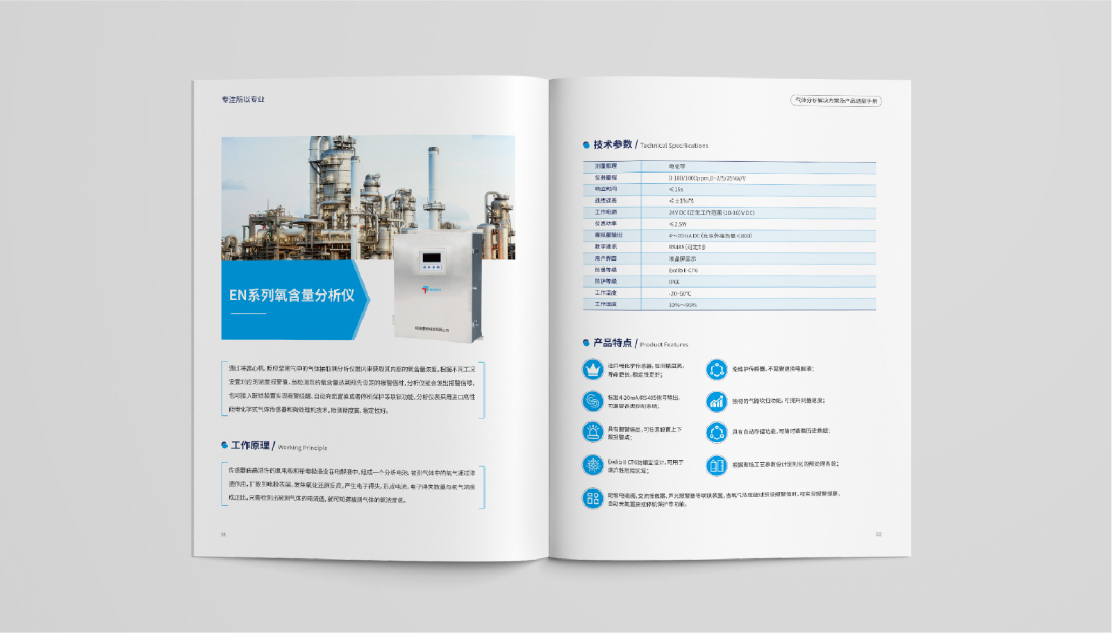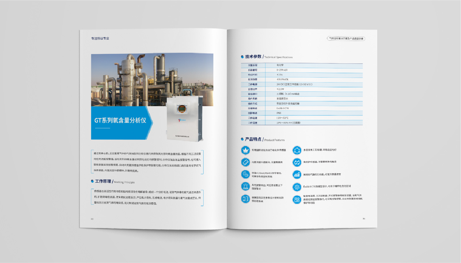 3、內(nèi)頁將產(chǎn)品詳細(xì)展示,并針對每個(gè)產(chǎn)品進(jìn)行細(xì)致介紹。同時(shí),在每個(gè)產(chǎn)品介紹中加入工作原理、技術(shù)參數(shù)、產(chǎn)品特點(diǎn)等信息,讓客戶更全面地了解泰仲科技所提供的氣體分析解決方案及產(chǎn)品。