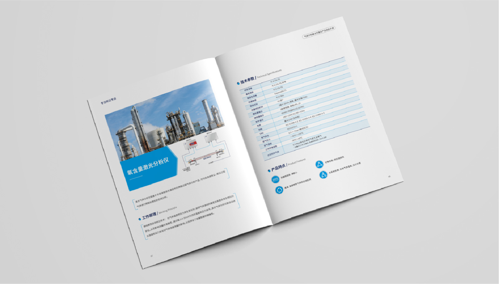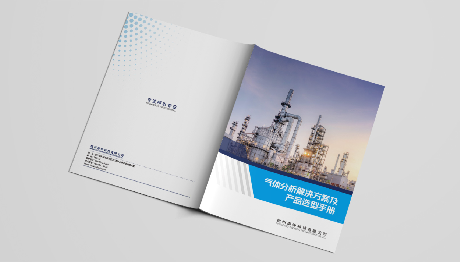 2、宣傳冊的封面選用了一張高清晰度的企業(yè)產(chǎn)品圖片,展現(xiàn)了泰仲科技所提供的氣體分析設(shè)備和服務(wù),封面簡潔明了。