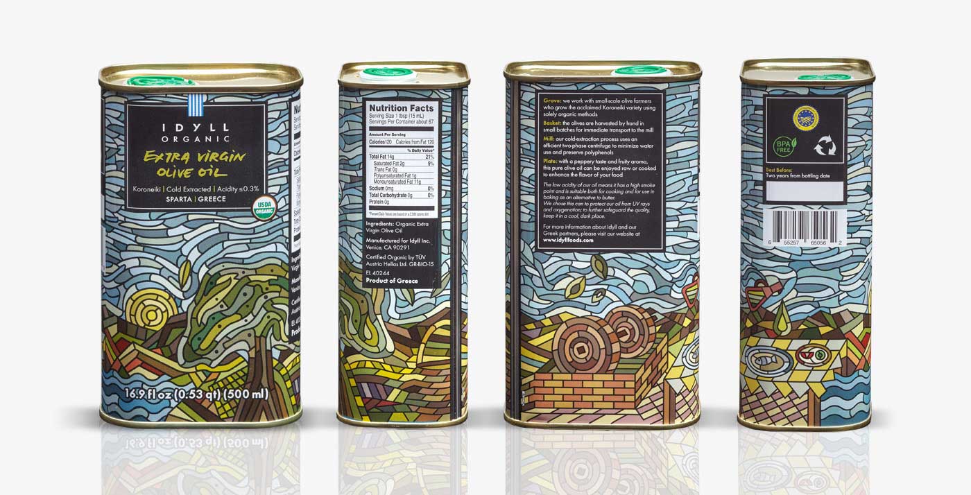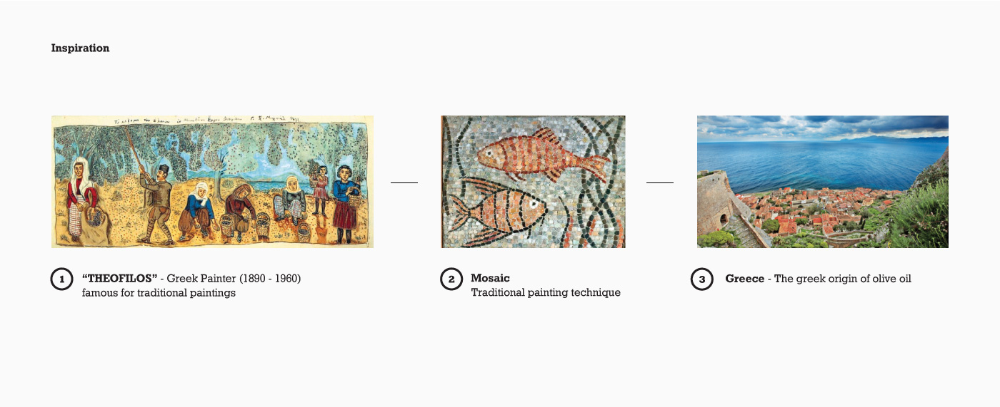 隨著社會工作的壓力增大,以及城市社會經濟的高速運轉,城市的人越來越渴望能夠得到一份田園的安寧。我們基于這樣的市場需求,設計了一款田園插畫風格的橄欖油包裝,以求給予人們心理的慰藉,達到情感的共鳴。從遠遠的看過去,完全脫離了傳統的       橄欖油包裝設計,應該說是脫離了你對包裝設計的認知。對,他就是一幅畫面,一份抽象的作品,這樣的商品,會有人不喜歡嗎?