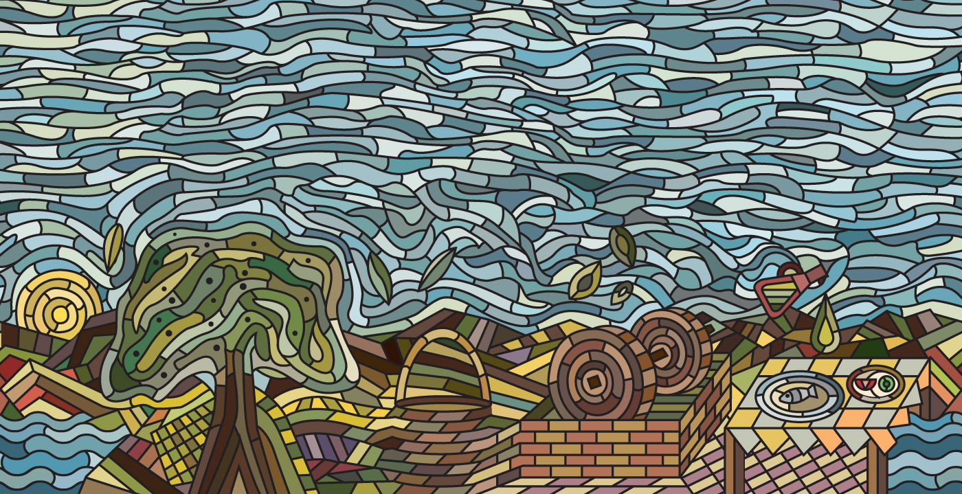 田園插畫風格的橄欖油包裝設計-畫一樣的產品包裝設計-好看的食用油包裝設計-專業的食用橄欖油包裝設計-杭州包裝設計公司