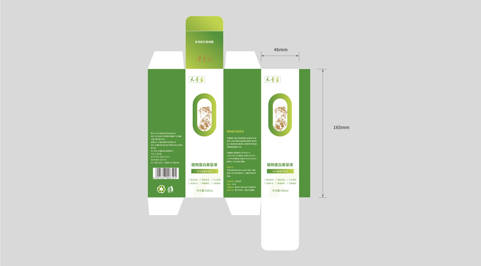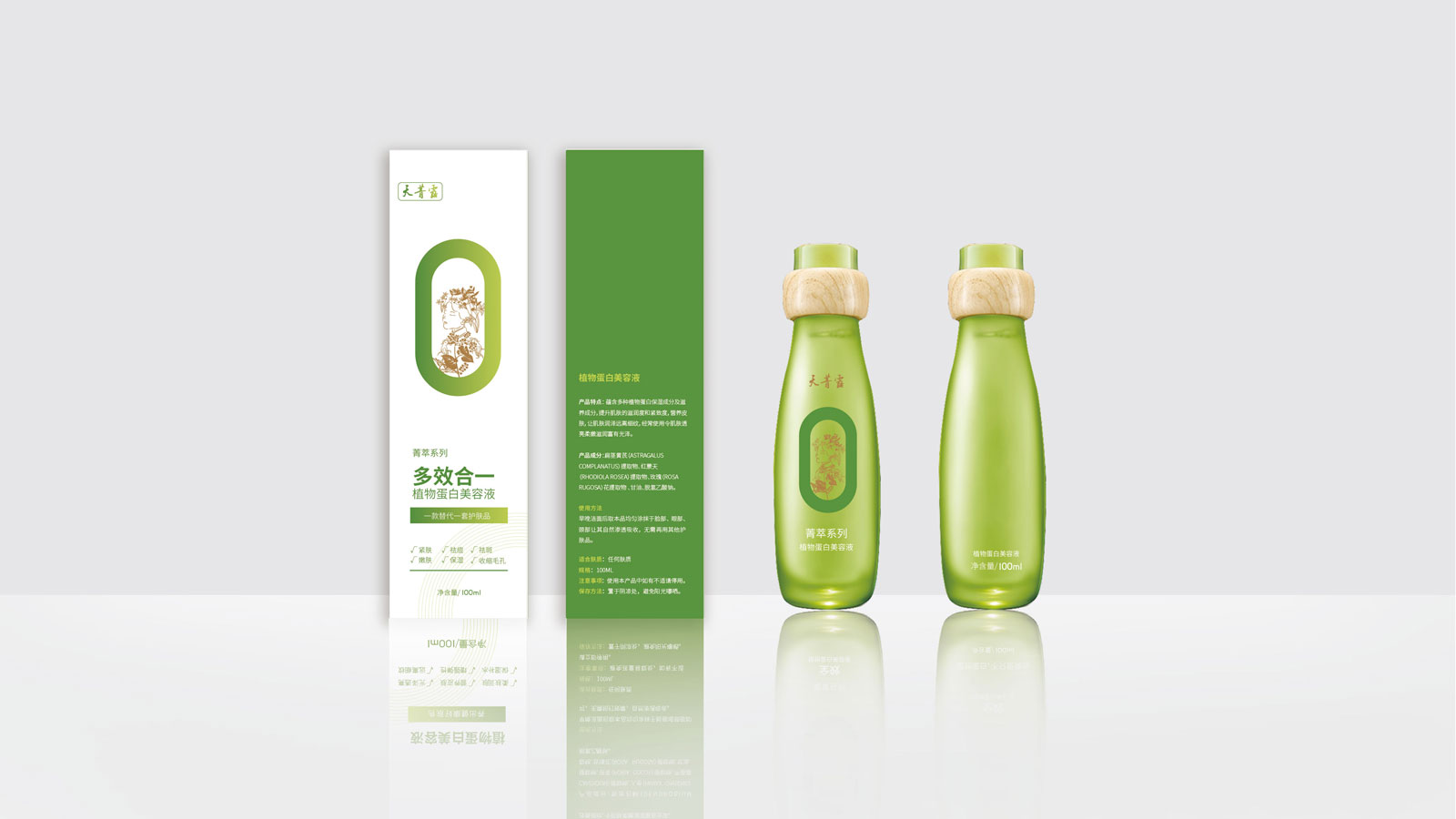 包裝創意闡述:整體畫面簡潔而不簡單,配色上用了牛油果綠,傳達健康、綠色、純天然的理念。配上廣告語“植物蛋白,不只是美白”兩者結合既突出了產品本身植物提取、零添加劑的特點,又闡明了產品全效護膚的功能。