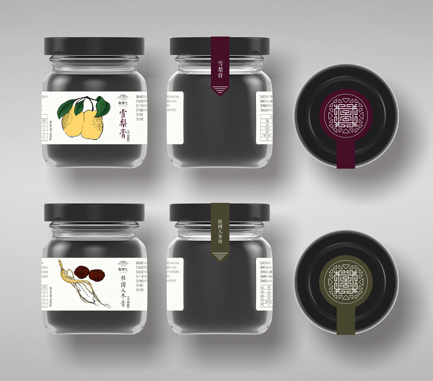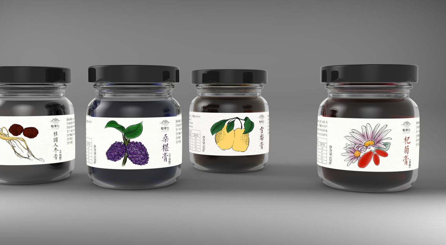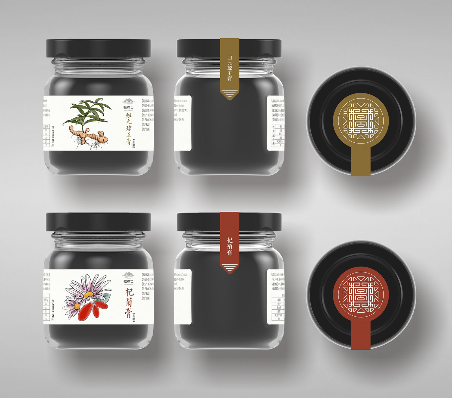 膏方品種類繁多,目前中藥材市場魚龍混雜,導致膏方質量良莠不齊。敬存仁利用獨一無二地理原材料優勢打造原生態無污染系列膏方產品。石特為敬存仁做了全面的品牌形象設計,統一風格,統一品牌形象。在品牌命名上,遵循中國儒家思想“敬業修身、存為德、仁滿天下”故名為敬存仁。