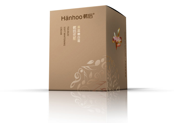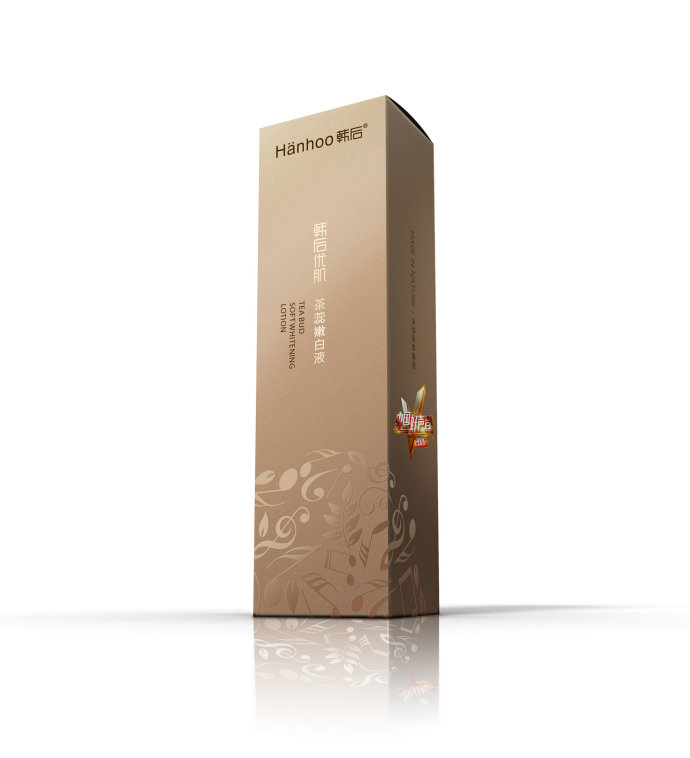 包裝采用及簡的風格,運用灰色調,顯得典雅而高貴,產品盒上還配有精細的音樂條紋讓人感到肌膚像音樂一樣有活力充滿彈性。同時這中簡約的包裝風格給人傳遞一種環保時尚的理念。韓后茶蕊這一系列護膚品有嫩白霜、嫩白液、精華液,都采用相同的顏色外形包裝只是包裝盒上的字不同從而區別不同的產品,這樣給人一種整體性。