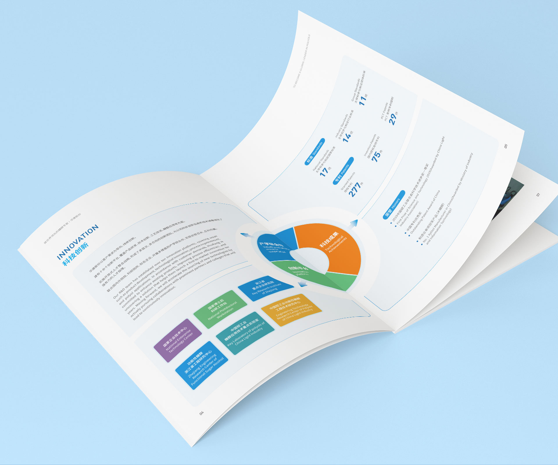 內(nèi)頁(yè):分層呈現(xiàn)企業(yè)實(shí)力(國(guó)家綠色工廠、行業(yè)十強(qiáng)等資質(zhì) )、核心產(chǎn)品(如 L - 阿拉伯糖 )、應(yīng)用領(lǐng)域(健康食品配料 ),通過(guò)簡(jiǎn)潔文案 + 場(chǎng)景化圖片,傳遞 “做世界領(lǐng)先的糖醇專家” 的品牌定位,適配商務(wù)洽談、展會(huì)分發(fā)等場(chǎng)景,助力客戶快速了解企業(yè)價(jià)值。